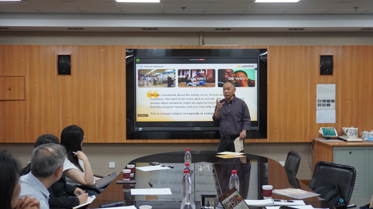 随后,叶兆辉教授围绕防止自杀干预主题,深入剖析了相关项目的理论基础与实践路径。他从多个关键环节出发,系统阐释了如何在日常生活中识别并干预潜在的自杀风险个体,并介绍了科学可行的沟通与支持策略。在分享过程中,叶教授呈现了防止自杀干预项目在学校、社区等不同场域中的应用实践,直观展示了应对心理危机时的操作流程与干预成效。在相关主题分享之后,双方就防止自杀干预项目的合作意向进行了深入探讨,围绕项目在内地的推广路径、本土化实施策略等方面的协作机制展开了富有成效的交流。
