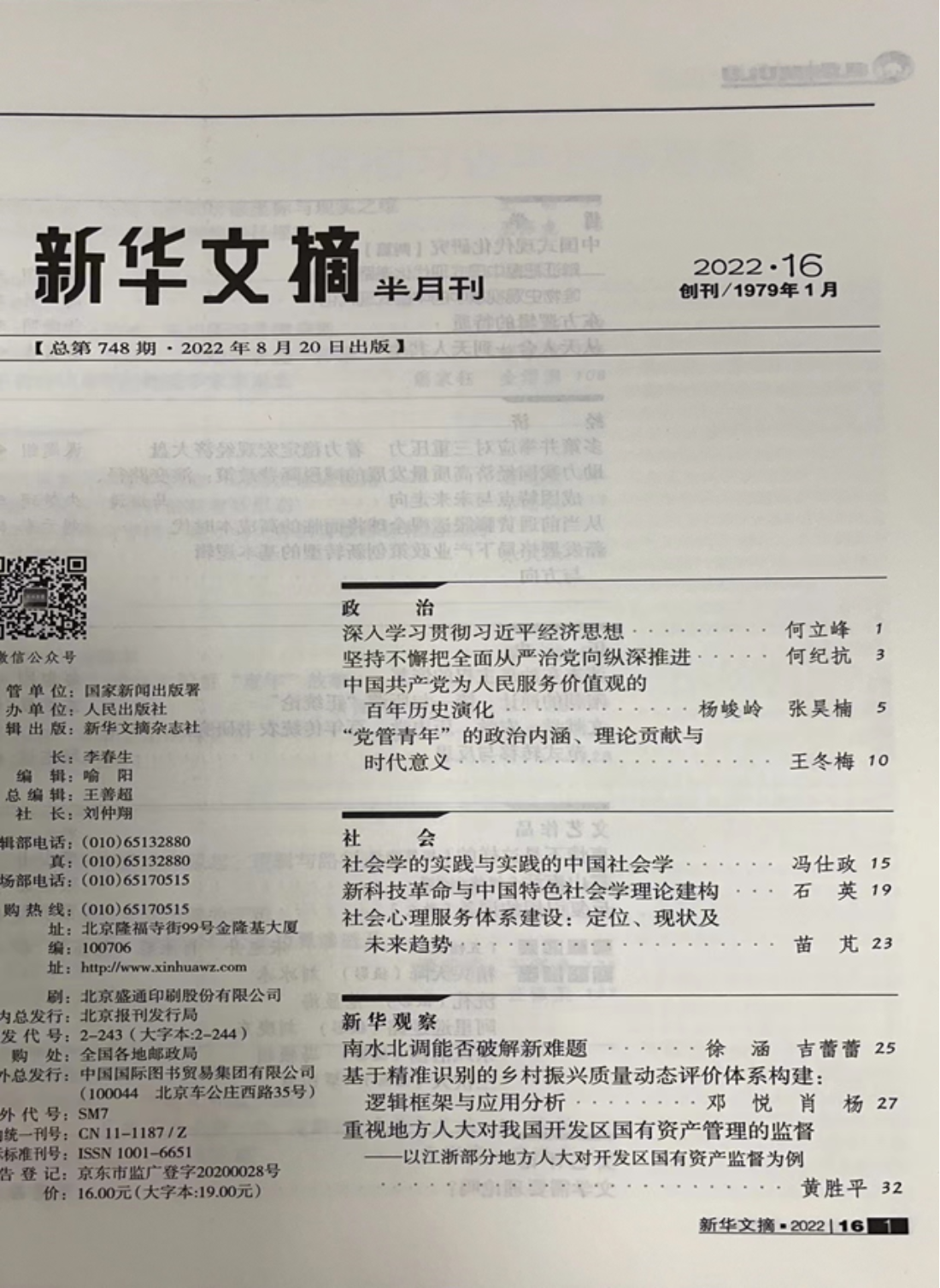 2022年第16期《新华文章》全文转载了我院青年教师苗芃刊发在《社会治理》的文章《社会心理服务体系建设:定位、现状及未来趋势》。