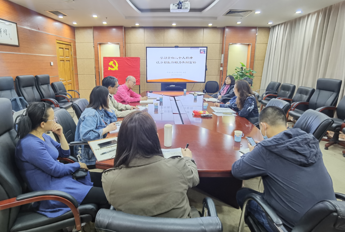 为深入开展学习贯彻习近平新时代中国特色社会主义思想主题教育,落实学校党委部署,根据学院主题教育理论学习方案相关安排,2023年4月24日下午,院领导班子开展第二次集中学习,以“学习贯彻二十大精神,以乡村振兴助力共同富裕”为主题,由我院与经济与资源管理研究院联合主办,全国脱贫攻坚先进个人、中国人民大学法学院宋彪副教授作为主讲嘉宾,全国脱贫攻坚先进个人、经济与资源管理研究院党总支书记张琦教授与谈,我院党委书记赵秋雁主持,两院领导班子和部分师生党员以线上线下相结合形式参会。